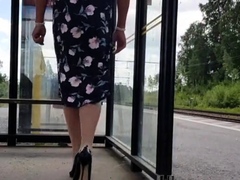 HannaTransa Chastity Crossdresser outdoors at train station.